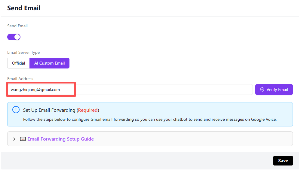 Enter the recipient email address in the pop-up dialog, click the Send Test Email button, then check the target email inbox. Note: The recipient email cannot be the same as the sender email.